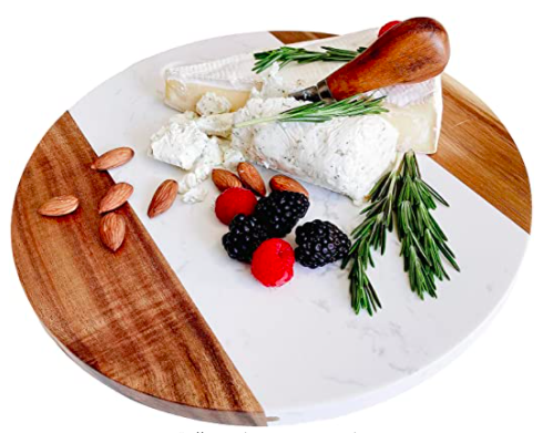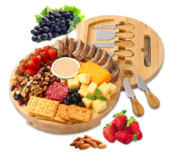 With every beautiful charcuterie board, comes the items you need to achieve this work of art. I’m talking boards, bowls, cheese slicers, small spoons, and cheese knives. Not every board is created equal. You can have a small board, a rectangular board, a circular board, an entire kitchen island…the sky is the limit. I have found I make the prettiest charcuterie boards with a round board that has edges so that the contents aren’t falling off. Here are a few beautiful boards that will make sure to make a statement. These also make perfect holiday gifts (hint hint!)